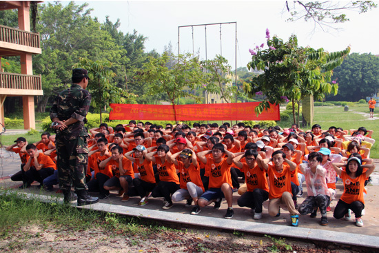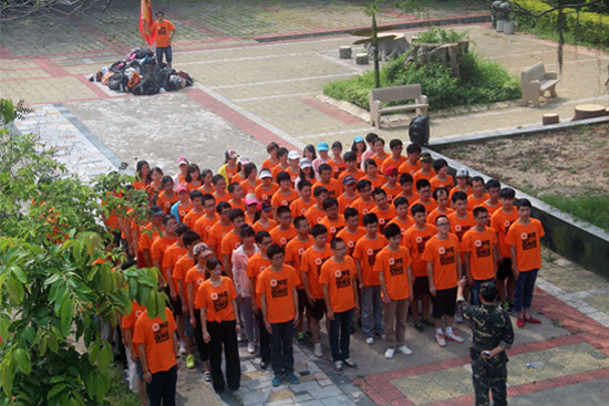 當(dāng)天抵達(dá)大嶝島后,整個大團(tuán)隊被分成兩個連隊:“尖刀連”和“英雄連”,并分成了八個小隊。首當(dāng)其沖迎接所有員工的就是教官嚴(yán)格的軍訓(xùn)。一個口令,一個動作,都必須執(zhí)行到位。一開始團(tuán)隊因為不適應(yīng)還帶著點(diǎn)懶懶散散,教官不留情面,直接處罰,命令所有人抱頭蹲地,原地蹬腿。接著又因為集合拖拉,全員罰做俯臥撐。經(jīng)過一番雕琢后,我們的大團(tuán)隊拿出了應(yīng)有的紀(jì)律和氣勢,走入了下一個環(huán)節(jié)。