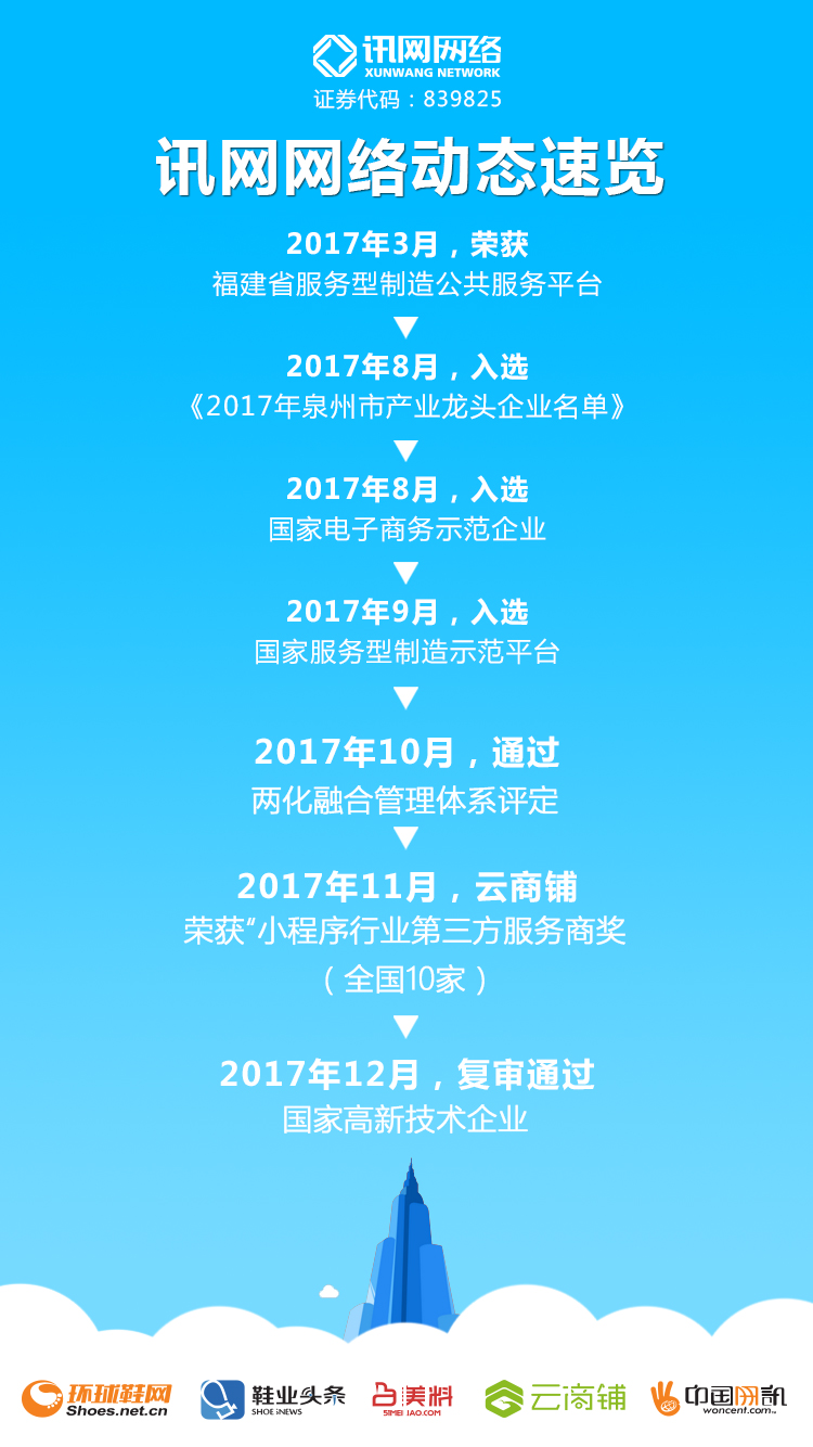 知識呈現品牌力,科技彰顯新實力,訊網網絡近年來在技術創新和產業服務方面取得的突出成就,也得到了諸多認可。回首2017年,公司連續獲得國家電子商務示范企業和國家服務型制造示范平臺稱號。此次又獲得國家級高新技術企業的評定,是政府各職能部門對訊網網絡在科技研發工作中所取得成績的肯定與鼓勵,同時也是對訊網網絡提出了更高的創新要求。