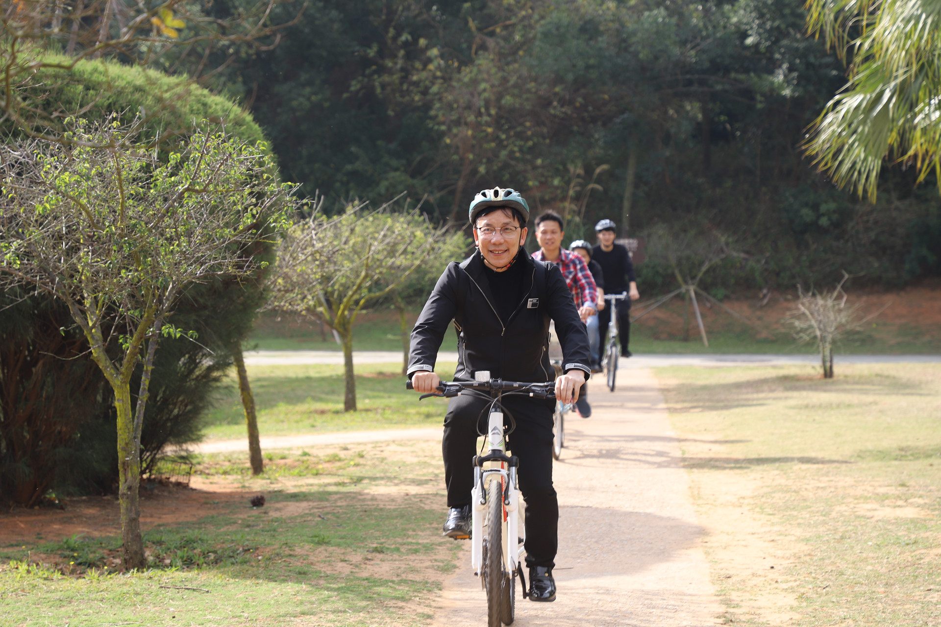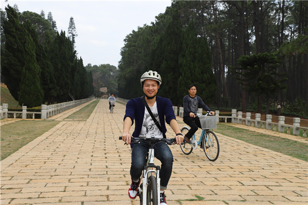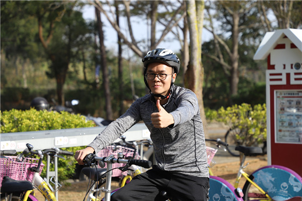 上完“金門文化之旅”課堂后,王老師還在課間活動中,在中山紀念林利用“騎行”方式了解金門,將戰爭中的協作精神,通過現代化的方式,讓大家勞逸結合,揮灑汗水,盡情“踐踏”。