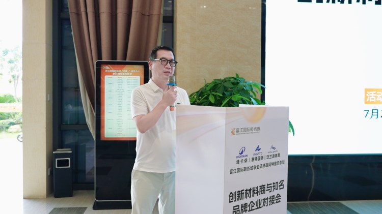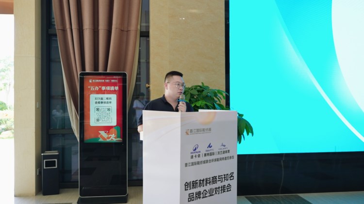 在對接會的“創(chuàng)新材料商演講”環(huán)節(jié),八位材料商代表依序登臺,分別向與會嘉賓介紹了各自企業(yè)于材料創(chuàng)新領(lǐng)域的研發(fā)優(yōu)勢、產(chǎn)品優(yōu)勢、企業(yè)發(fā)展規(guī)劃,以及當(dāng)前產(chǎn)品的發(fā)展?fàn)顩r與潛力。