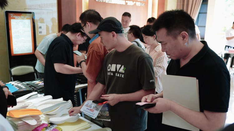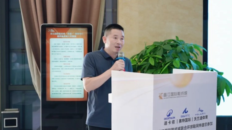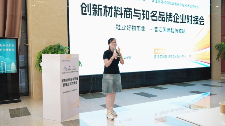 “創(chuàng)新材料商與知名品牌對接會暨鞋業(yè)好物市集第二站-晉江國際鞋紡城站”(以下簡稱“對接會”)于晉江國際鞋紡城舉辦,本場對接會由環(huán)球鞋網(wǎng)與晉江國際鞋紡城聯(lián)合主辦。福建晉江鞋紡城有限責(zé)任公司總經(jīng)理李宵還、陳埭鞋材商會會長丁鶴鳴、迪卡儂鞋部創(chuàng)新項目Orange.Chen(女士)與Jello.Huang、賽特國際總經(jīng)辦副總經(jīng)理彭東、產(chǎn)品中心材料規(guī)劃師田風(fēng)領(lǐng)、研創(chuàng)部首席技術(shù)專家王淵博、沃蘭迪品牌創(chuàng)始人周健及其總經(jīng)理童希、海泰客(廈門)品牌管理有限公司執(zhí)行董事張煒,以及來自廣州、杭州、臺灣等全國各地的創(chuàng)新材料商共同參與了此次盛會。