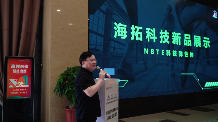 泉州海拓新材料科技有限公司代表進行了“海拓科技新品展示——NBTE科技彈性體”的主題演講,展示了NBTE科技彈性體在結(jié)構(gòu)與性能方面的優(yōu)勢,并詳細剖析了其在大底、鞋墊等各類鞋業(yè)應(yīng)用中的優(yōu)秀案例。