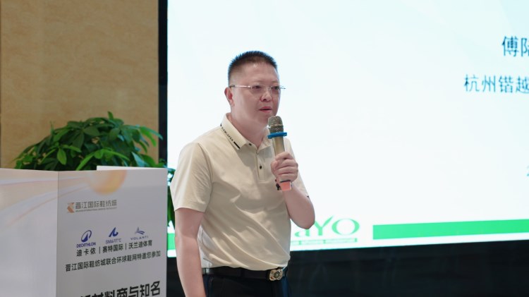 福建省晉江市三盈鞋材有限公司代表進行了題為“高耐黃、久擺放、無苯酚低voc環(huán)保海綿研發(fā)匯報”的主題演講,展示了三盈鞋材的最新研究成果,并根據(jù)品牌方需求推介了復(fù)合、領(lǐng)口、鞋墊等多種海綿產(chǎn)品。