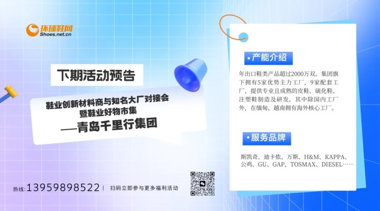 創(chuàng)新材料商與知名品牌對接會暨鞋業(yè)好物市集作為環(huán)球鞋網(wǎng)繼鞋業(yè)盛典外又一創(chuàng)新型服務(wù),旨在搭建一個集新材料、新工藝、新設(shè)備與知名品牌/大廠等多方融合的一站式公共交流服務(wù)平臺。