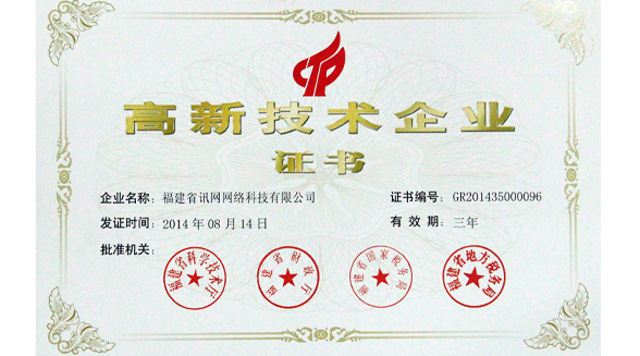 近日,福建省科技廳公布了2014年第一批高新技術企業名單,福建省訊網網絡科技有限公司成功獲批,成為國家高新技術企業。這標志著公司的技術研發、自主創新能力上了一個新臺階。